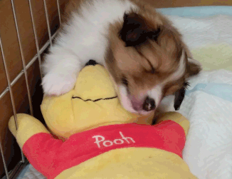 プーさんを枕にすやすや