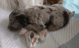 お母さんの前足を枕に
